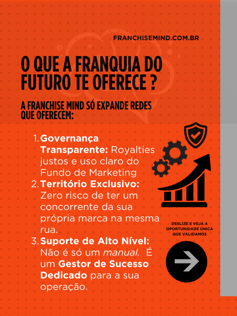 Nós da Franchise Mind, como especialistas em formatação na verdade, validamos negócios sustentáveis e expandimos redes que colocam o franqueado em primeiro lugar, preservando os interesses da franqueadora.